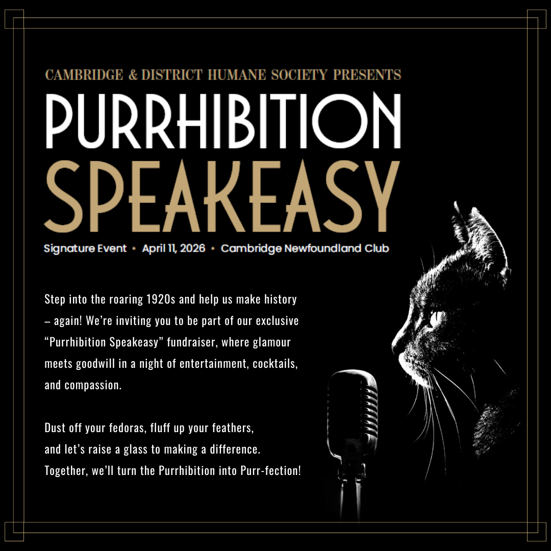 1 General Admission Ticket for the Cambridge & District Humane Society’s Purrhibition Speakeasy Event.